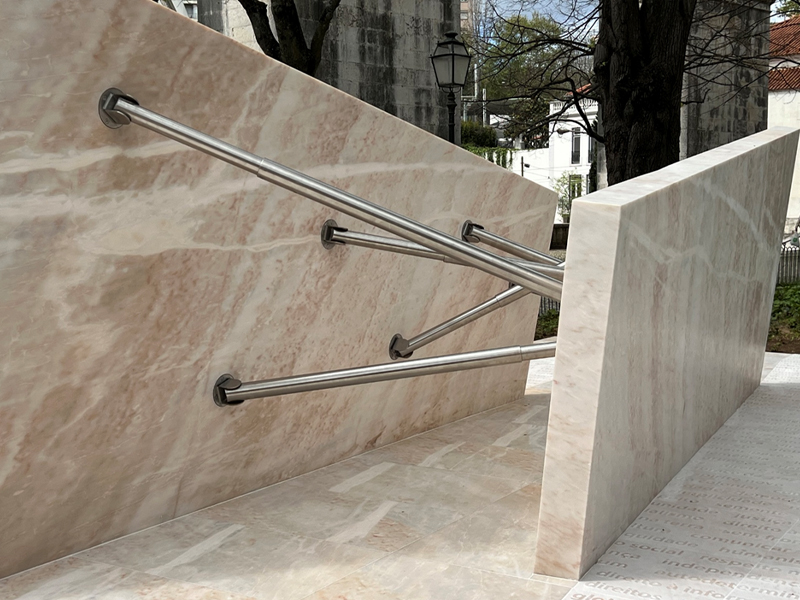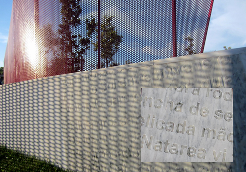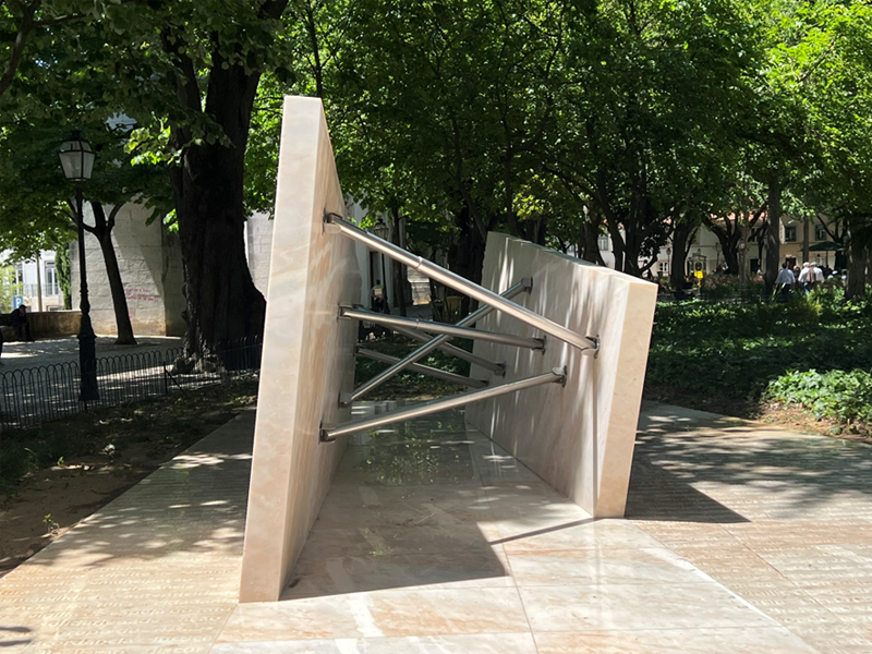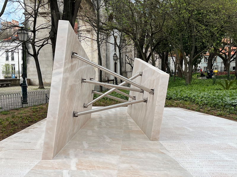 Correia Garção , 2015 | Ferro, chapa furada em ferro, mármore português com poema gravado | 5,30 x 7,50 x 25 m
