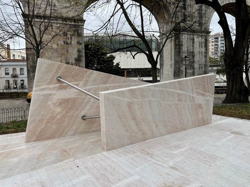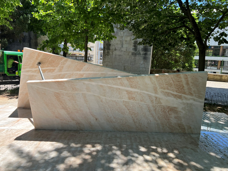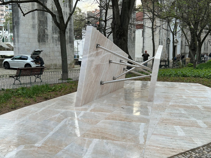 Mármore português e aço inoxidável | Escultura 2,10 x 4,35 x 1,64 m | Pavimento 11,60 x 5,50 m