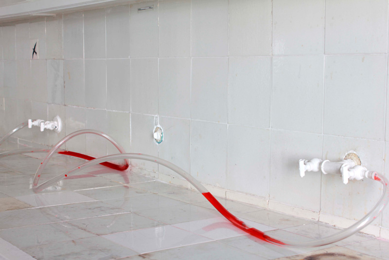 Polaridades Solúveis | Cristina Ataide | Tubo de plástico e ecoline | aguarela de Renata Cruz | 2016
