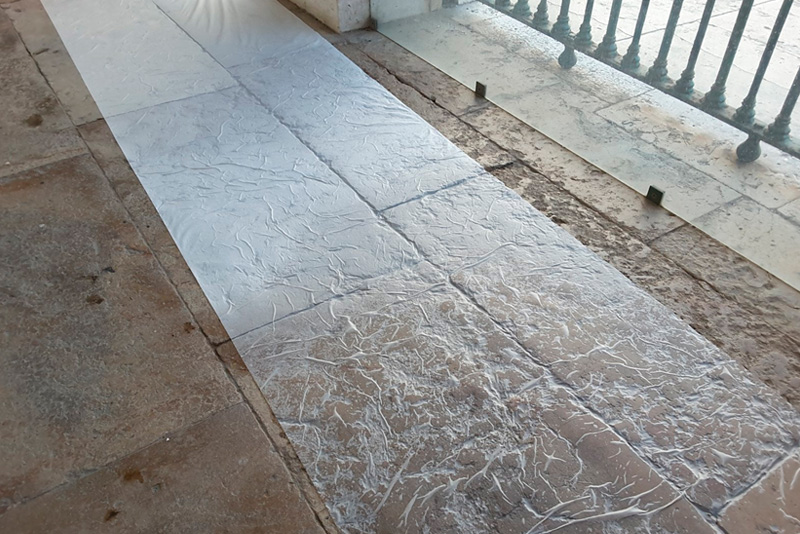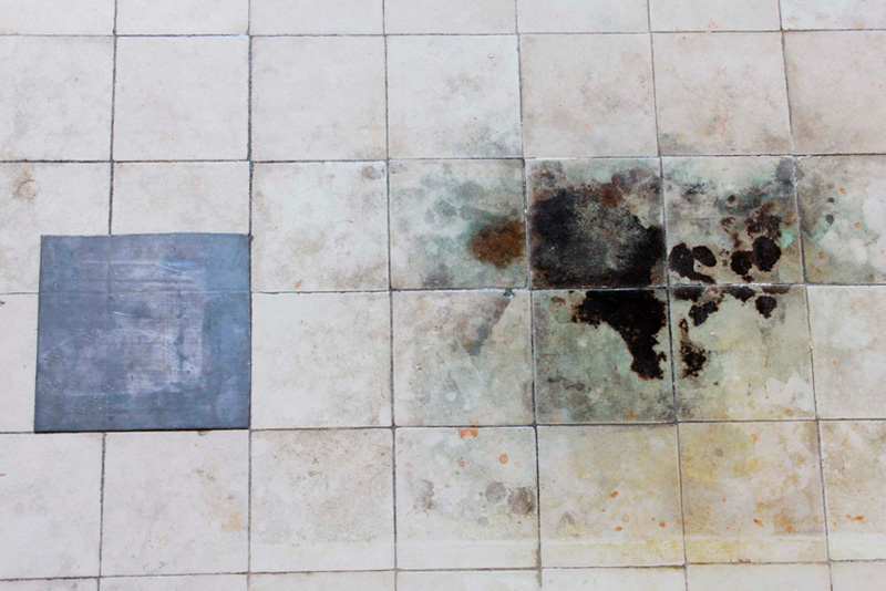 Polaridades Soluveis | Cristina Ataide | frotagem com água, em papel chines, sobre o chão do Museu | 2016
